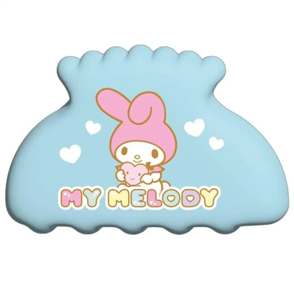 Uprostred spony je roztomilá grafika My Melody, ako objíma malého plyšového medvedíka, okolo nej sú biele srdiečka a nápis „MY MELODY“, ktoré zdobia povrch. Tvar spony je bezpečný a pohodlný, vďaka zúbkovanému prevedeniu dobre drží aj hrubšie vlasy. Materiál šetrný k vlasom ich neťahá, takže je možné ju nosiť pohodlne po celý deň.
