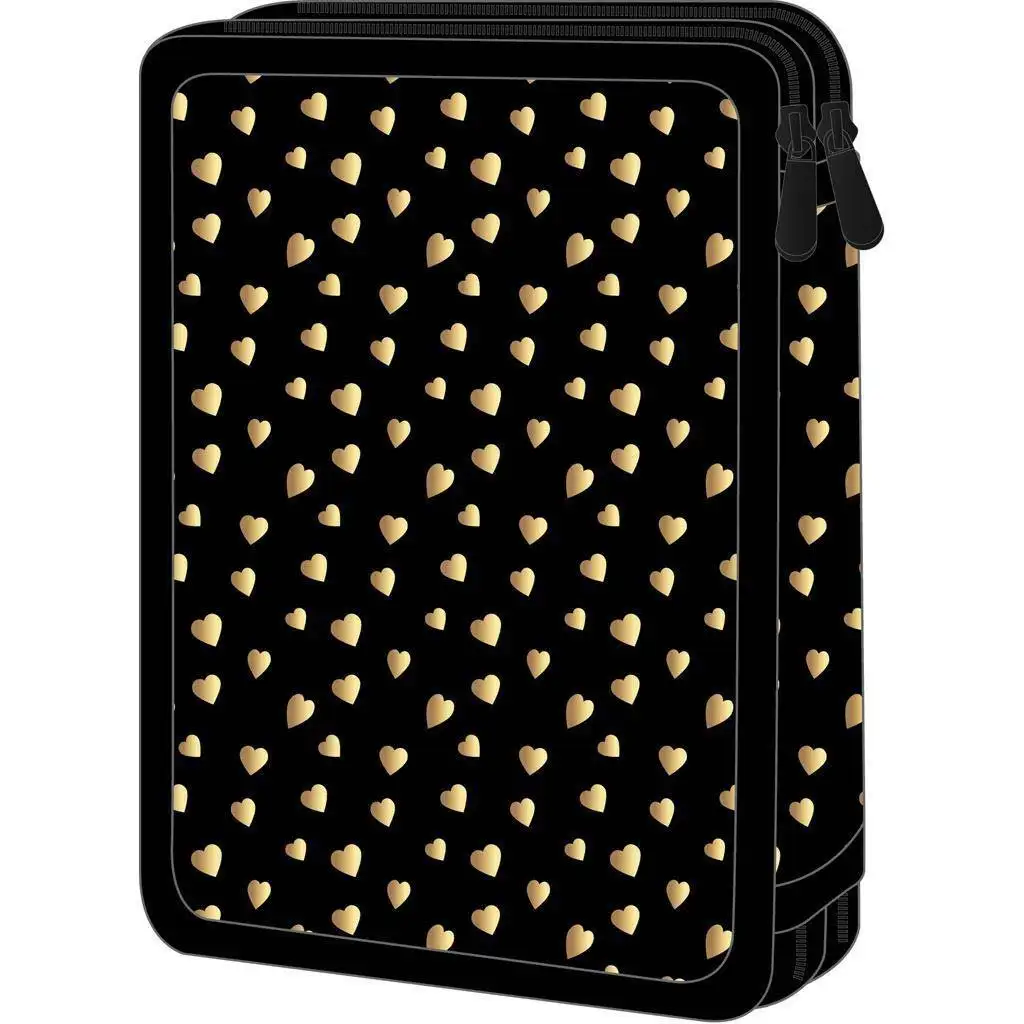 Elegancia a praktickosť sa stretávajú v púzdre na perá Luna: Must s 2 priehradkami, vo variante Butterfly Hearts, ktoré je vďaka svojmu štýlovému vzhľadu a úplnému vybaveniu dokonalou voľbou pre každého školáka, ktorý má rád módu. Trblietavé zlaté srdiečka na čiernom podklade vytvárajú moderný, čistý dizajn, takže toto púzdro nie je len praktickou školskou pomôckou, ale zároveň aj módnym doplnkom.