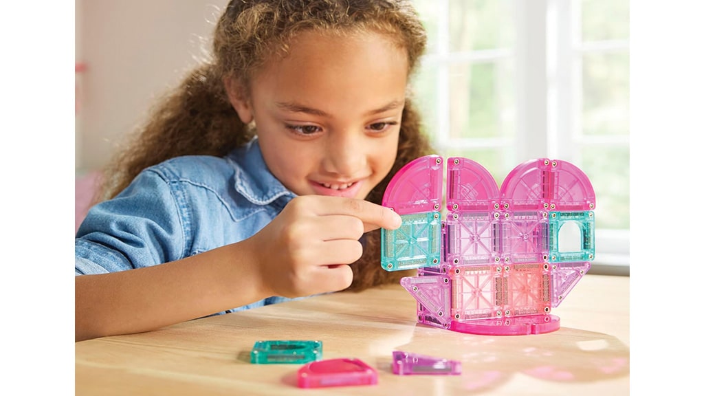 Ako každá súprava MAGNA-TILES, aj táto podporuje voľnú, kreatívnu hru, pričom rozvíja jemnú motoriku, koordináciu ruka-oko a rané STEM (vedecké, technologické, inžinierske a matematické) zručnosti. Súprava je ideálnou voľbou na cestovanie, pretože je ľahko prenosná a vďaka magnetickým dielikom sa kúsky ľahko nestratia. S farebnými, trblietavými dielikmi môže detská fantázia lietať, zatiaľ čo sa hravo učia a rozvíjajú.