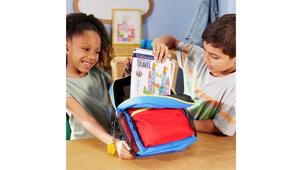Cestovná súprava MAGNA-TILES microMAGS je vhodná na cestovanie, avšak deti si stavanie najviac užijú, ak ju používajú na rovnom povrchu.