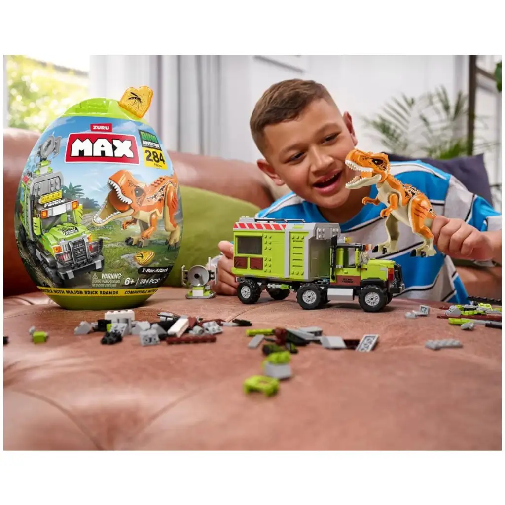 Stavebné kocky MAX sú kompatibilné s ďalšími poprednými značkami stavebných kociek, takže ich ľahko zapojíte do akejkoľvek existujúcej zbierky. T-Rex s pohyblivými nohami, rukami a čeľusťou zaručuje ešte väčšiu zábavu a vozidlo navrhnuté pre skutočné záchranné akcie umocňuje zážitok z hry.
