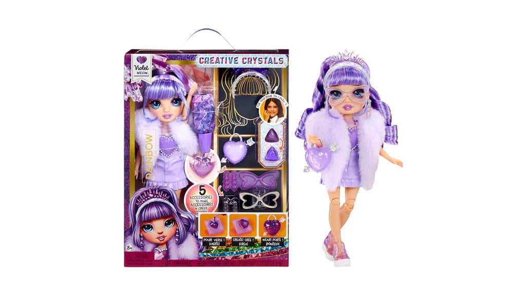 Kolekcia MGA Rainbow High Creative Crystal Bábik oslavuje tvorivosť, kreativitu a módu v klasickej podobe bábiky. Každá bábika prichádza s nástrojmi, ktoré umožňujú deťom rýchlo a vzrušujúco vytvárať roztomilé a farebné doplnky pre ich nového módneho priateľa. Pomocou priloženej živice a foriem môžu deti pridávať ozdoby k už zábavnému a jedinečnému vzhľadu bábik s vlastnoručne vyrobenými živicovými kúskami. Aj keď práve nie je čas na tvorenie (alebo po dokončení živicových doplnkov), tieto bábiky zostávajú zábavné. S ohybnými končatinami a kombinovateľnými vlasmi poskytujú hodiny zábavy a radostných zážitkov. S kolekciou piatich bábik si deti môžu vybrať svoju obľúbenú alebo dúfať, že ich zozbierajú všetky.