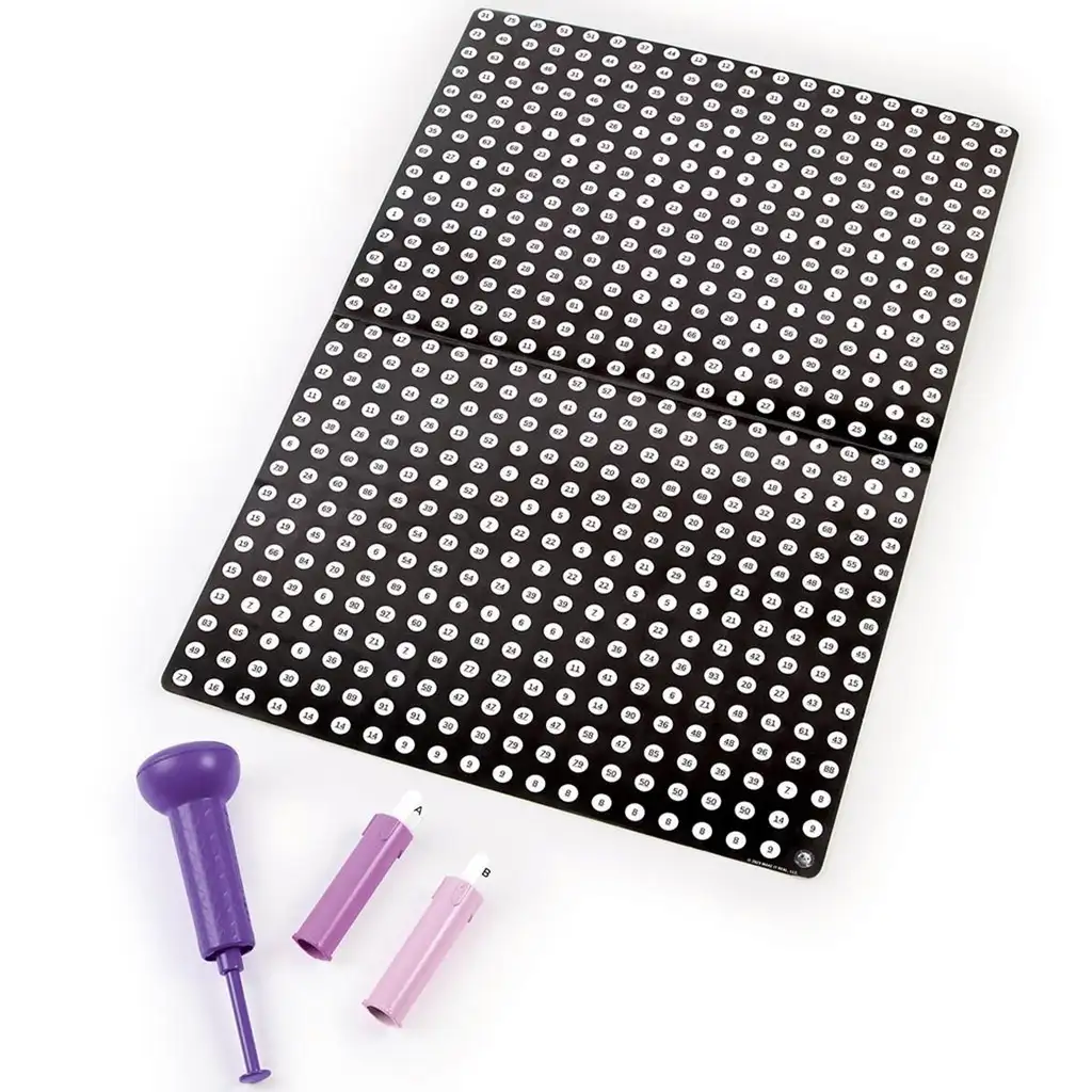 Vďaka šablónam s číselným kódom môžu deti postupovať bod za bodom podľa pokynov a tak pred ich očami krok za krokom vzniká nádherný bodkovaný plagát, ktorý si môžu vyvesiť na stenu izby. Ergonomický tvar pečiatkovacieho nástroja zaručuje jednoduché používanie aj pre menšie ruky.