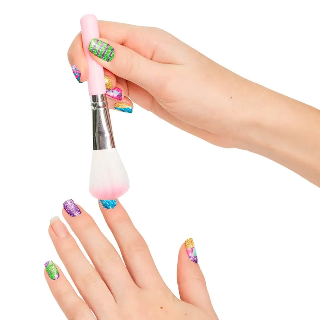 "Sparkle Primer" pomáha udržať lesklé farby trvalé a lesklé, zatiaľ čo priehľadný lak na nechty dokonale dokončuje vaše umelecké dielo. Súčasťou sady je aj štetec pre presné a rovnomerné nanášanie, ako aj šablóna pre tvorbu kreatívnych a jedinečných vzorov. Priložený návod krok za krokom vás prevedie celým procesom, takže je jednoduchý a ľahko sledovateľný aj pre začiatočníkov. S nechtovým setom "Make It Real" môžete rýchlo a jednoducho vytvárať ohromujúce, lesklé nechty, ktoré sa vynímajú a lesknú sa v každom okamihu. Objavte umenie nechtov a zažiarte s radou "Make It Real"!