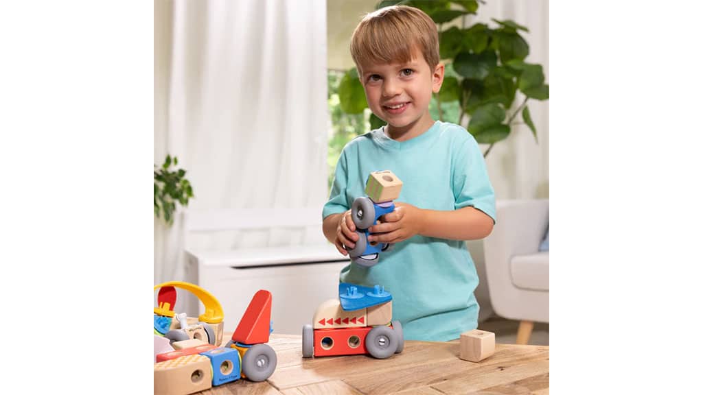 Melissa & Doug Blockables je stavebnica z dreva, ktorá pozostáva z jedinečne tvarovaných drevených dielov. Tieto diely sa dajú ľahko spojiť pomocou jednoduchých plastových konektorov. Stavebné prvky je možné pripojiť aj k plsteným kúskom a plastovým figúrkam, takže deti môžu voľne kombinovať a variovať jednotlivé časti. Kolekcia Blockables obsahuje viacero súprav, napríklad Farmársku súpravu, Súpravu vozidiel a Mestskú súpravu. Tieto súpravy rozvíjajú kreativitu, jemnú motoriku a schopnosť riešiť problémy, zatiaľ čo sa deti hrajú, učia a stavajú.