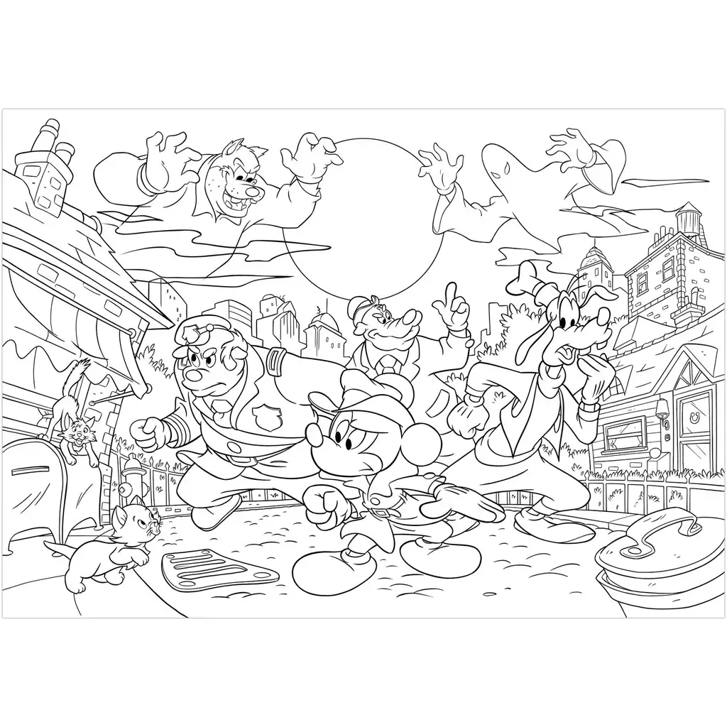 Zadná strana puzzle slúži ako detailné omaľovánky, kde sa Mickey, Goofy, policajt a záhadní zloduchovia objavia v čiernobielom prevedení – len čakajú, kým ich malými rukami vyfarbia. Táto výnimočná hra 2 v 1 rozvíja logiku, postreh aj kreativitu.