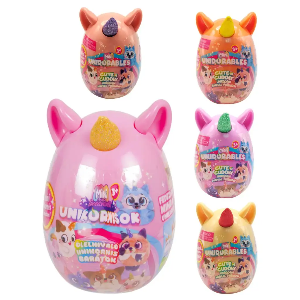 Predstavujeme fantastickú hračku, kde každé dieťa môže objaviť kúzelný svet plyšových jednorožcov! Tieto super mäkké, objímateľné malé jednorožce očaria každého svojím roztomilým pohľadom a trblietavým rohom. Farebné plyšové figúrky prichádzajú v prekvapení vo vajíčku, takže deti majú dvojitú zábavu: rozbaľovanie vajíčka a objavovanie, ktorého jednorožca nájdu. K balíčku sú priložené nálepky pre ďalšiu kreatívnu hru.