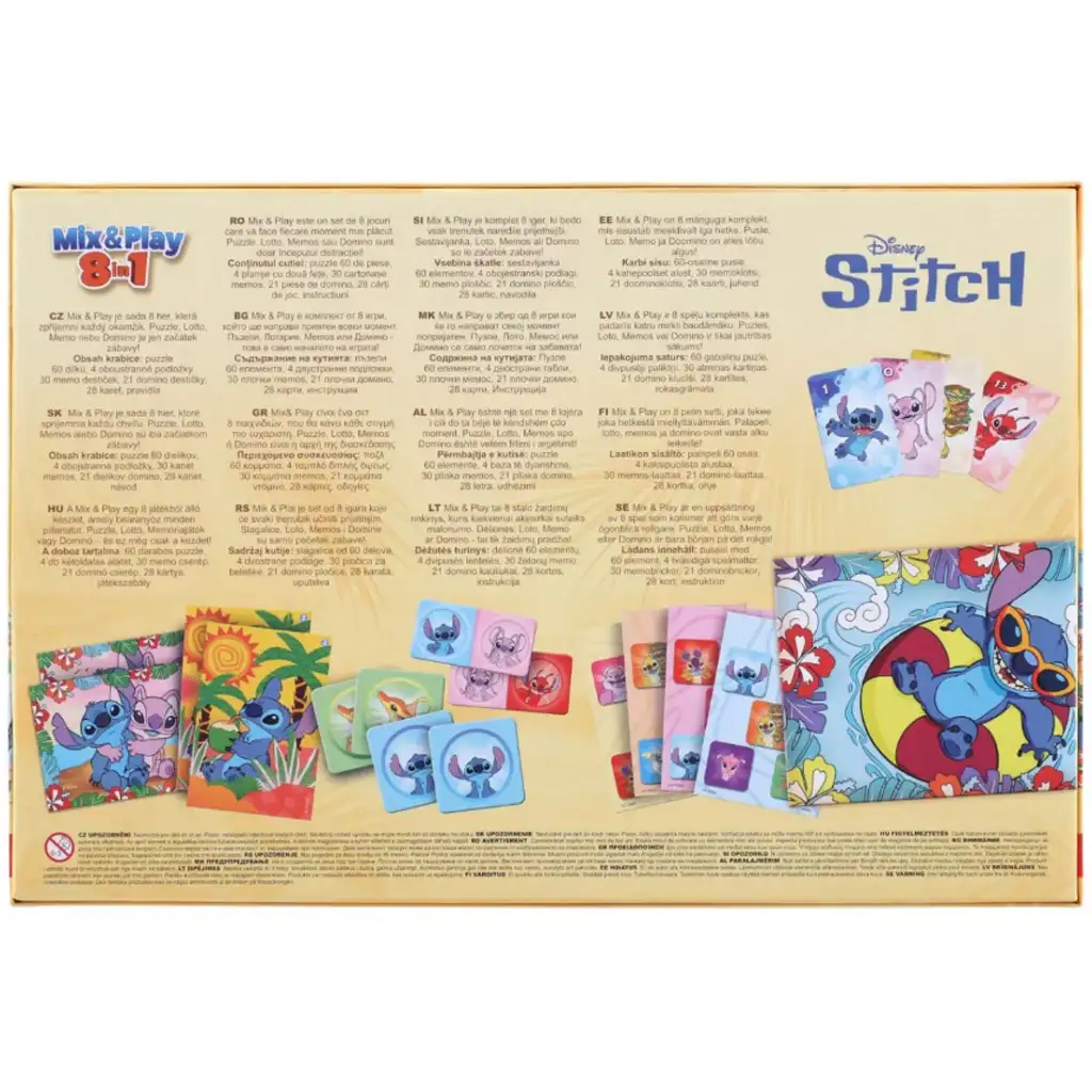 Objavte čarovný svet hry a učenia s kolekciou hier Stitch Mix & Play – 8 v 1, ktorá je určená najmenším fanúšikom Disney! Táto veselá, farebná sada ukrýva až osem rôznych druhov hier, všetky zdobené roztomilými obrázkami obľúbeného Stitcha a jeho priateľov. Sada je ideálnou voľbou pre deti v predškolskom veku, keďže počas hry rozvíjajú svoju pamäť, pozornosť, logické myslenie a sociálne zručnosti.