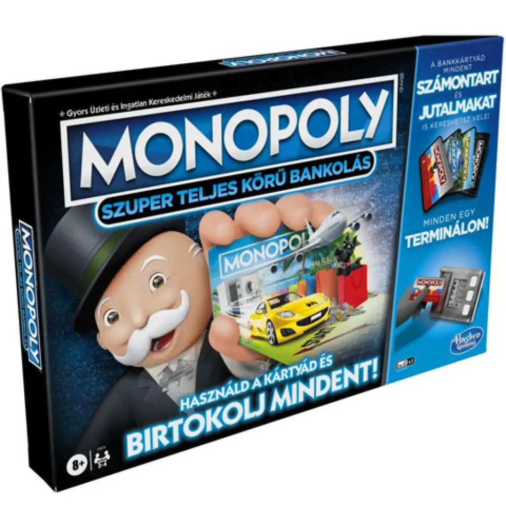 Odteraz nebude potrebné mať peniaze, stačí používať bankovú kartu počas vzrušujúcej a zvratmi plnej hry! V spoločenskej hre Monopoly Super kompletné bankovníctvo si hráči môžu zaznamenávať všetky svoje finančné pohyby na bankovú kartu a dokonca zbierať bonusy! Cieľ hry zostáva nezmenený; hráči musia získať čo najviac peňazí získavaním nehnuteľností a najbohatší nakoniec vyhráva hru!