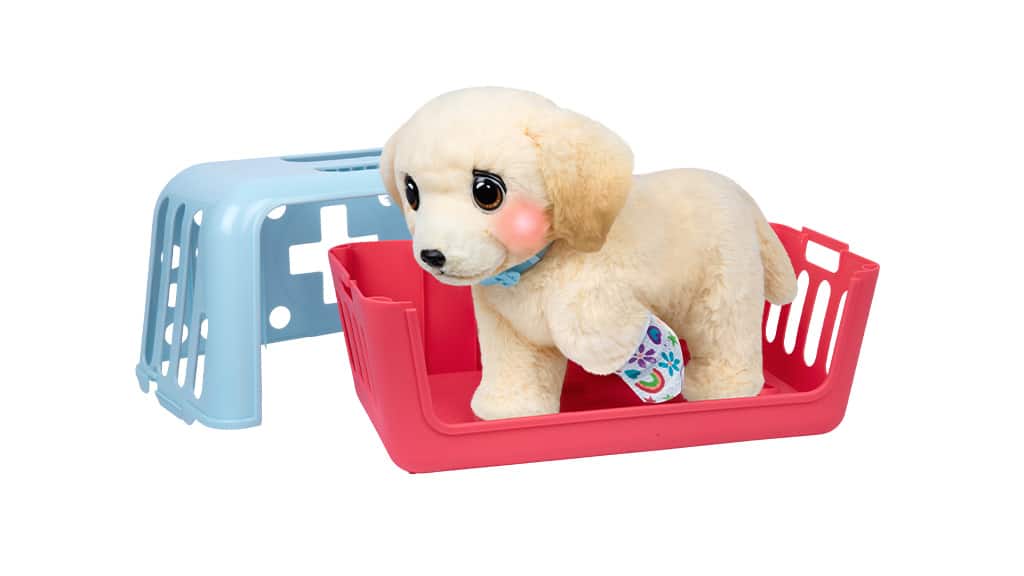 S hračkou Moose Toys Little Live Pets Ouchies Cooper sa deti môžu stať skutočnými malými veterinármi, ktorí sú pripravení starať sa a rozmaznávať svojho malého miláčika! Cooper je mäkké, roztomilé šteniatko plemena Golden Retriever, ktoré dokáže vydať viac ako 50 rôznych zvukov a reakcií. Potrebuje pomoc detí vo veku od 5 rokov, aby mu vyliečili labku a aby sa cítil lepšie.Táto herná súprava obsahuje všetko, čo je potrebné na starostlivosť o Coopera: fixačný obväz, prepravku pre malé zvieratá a náplasti aktivujúce sa vodou, ktoré premenia fixačný obväz na sadru. Cooper šťastne kráča, keď ho deti pohladia, ale pozor! Ak deti dajú ruku pred Cooperov ňufák počas prechádzky, šteniatko bolestivo zakňučí, pretože má zranenú labku.