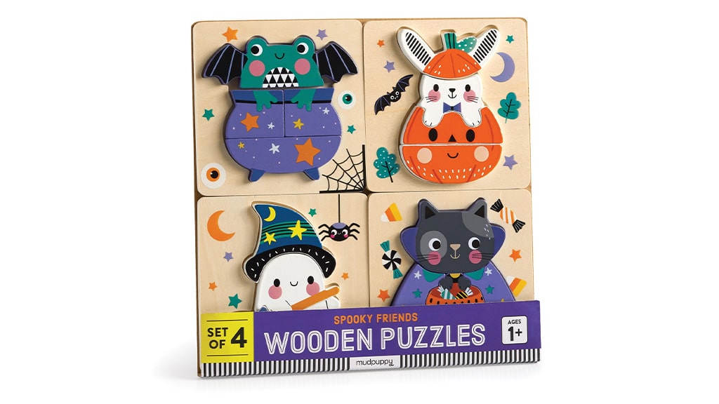 Aj malé deti môžu zažiť čaro Halloweenu so súpravou Spooky Friends, ktorá obsahuje štyri drevené puzzle s roztomilými bytosťami a detskými motívmi. Tieto puzzle poskytujú skvelú príležitosť pre najmenších precvičovať si schopnosť riešiť problémy a rozvíjať jemnú motoriku. Počas hry sa deti nielen zabávajú, ale aj rozvíjajú, pričom objavujú rôzne tvary, farby a vzory. Súprava Spooky Friends je ideálnou voľbou, aby aj tí najmenší mohli byť súčasťou sviatočnej atmosféry, pričom sa zúčastňujú bezpečnej a rozvíjajúcej hry.