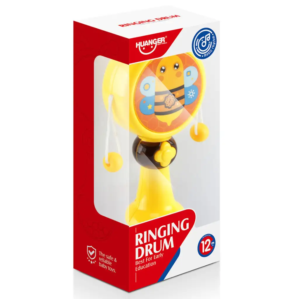 Fascinujúci vzhľad hračky pridáva ďalšiu atrakciu k hre. Na citrónovo žltom pozadí je roztomilý motív včielok, ktorý zaručene upúta záujem a fantáziu detí. Včielky na vrchu bubna vyžarujú veselosť a hravosť, zatiaľ čo nádherná citrónovo žltá guľa na spodnej časti rukoväte dodáva hračke jedinečný vzhľad.