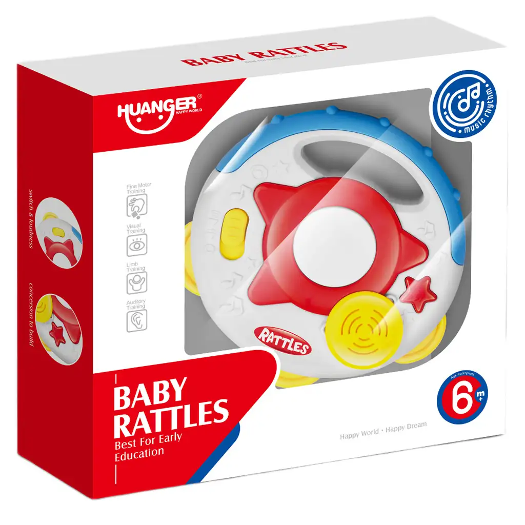 Hrkálka Baby Volant je skvelá hračka pre najmenších. Tento volant pripomína hrkálku, pretože je vybavený malými činelmi, ktoré vydávajú príjemný zvuk hrkania, keď dieťa pohne nimi. Okrem toho, keď je zapnutý, môžeme počuť rôzne melódie, čo robí zážitok z hry ešte farebnejším a vzrušujúcejším.