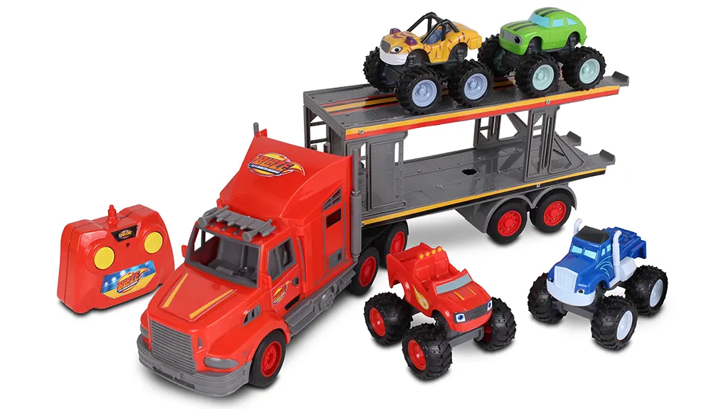 Na základe animovaného seriálu NKOK Blaze a Monštrá: R/C Prepravca obsahuje všetko, čo deti potrebujú na znovuvytvorenie svojich obľúbených scén. Najprv môžu deti umiestniť menšie Monštrá – Blaze, Pickle, Crusher a Stripes – na dve úrovne Prepravcu. Potom môžu rodiny pomocou diaľkového ovládača pohybovať prepravcom v rôznych smeroch!