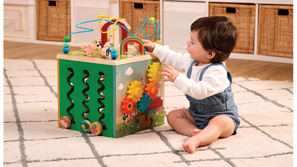 Toto päťstranné drevené herné centrum obsahuje farmárske postavičky, korálkový labyrint, traktor s prívesom, prepojené ozubené kolesá, kukajúcich priateľov a mnoho ďalšieho, aby si malé deti mohli precvičovať svoje jemné motorické zručnosti. Táto hračka nie je len zábavná, ale rozvíja aj kreativitu a schopnosť riešiť problémy u detí. Je ideálnou voľbou na podporu skorého učenia a stimuláciu detskej predstavivosti.