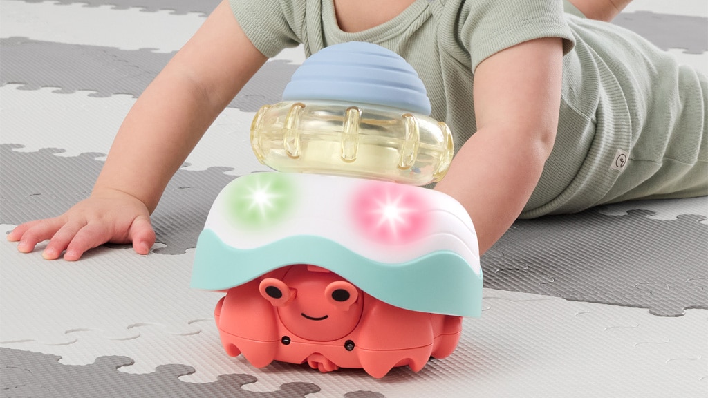 Malí môžu používať raka ako hrkálku a hryzátko, potom môžu usporiadať a skladať jeho panciere! Rak sa pohybuje v kruhovom vzore pre začínajúcich lezcov a v náhodných vzoroch pre pokročilých lezcov. Deti môžu počas hry počúvať tri piesne a 15 rôznych zvukových efektov. Táto hračka nie je len zábavná, ale rozvíja aj motorické zručnosti a vnímanie malých detí, zatiaľ čo objavujú rôzne pohybové vzory a zvuky.
