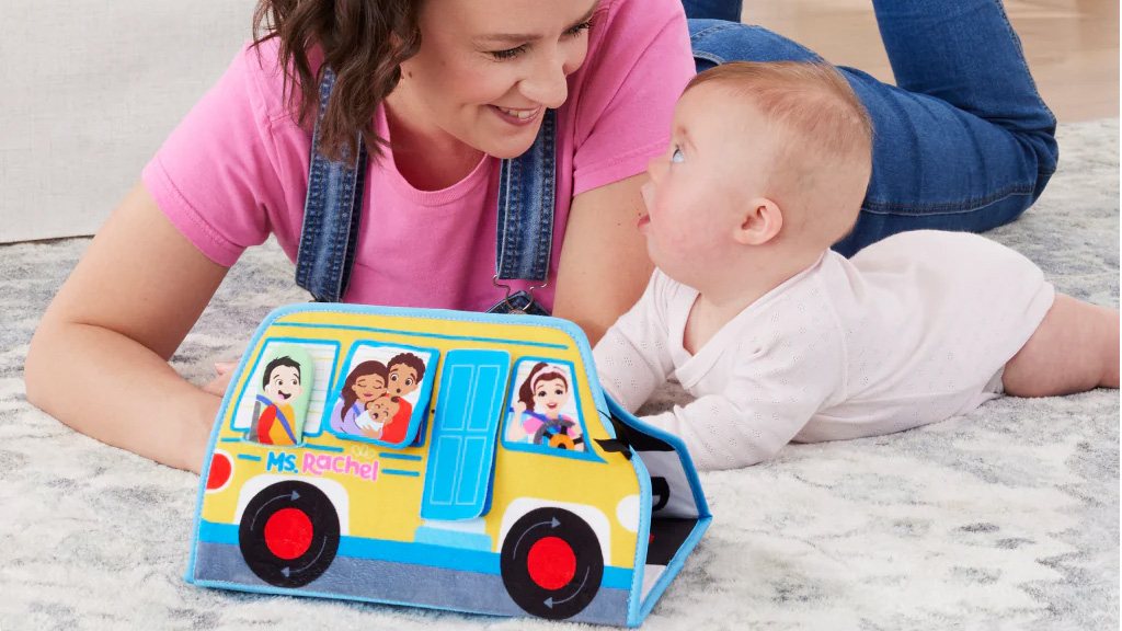 Deti si môžu užívať ležanie na bruchu, zatiaľ čo pohybujú chlapca hore a dole, trúbia na klaksón, mávajú stieracími stuhami a zdvíhajú dosku, aby videli, ako rodičia bozkávajú svoje bábätko. Aktivity autobus je mäkký, má rôzne textúry pre zmyslovú hru, obsahuje ilustrovaný obrázok pani Rachel, zrkadlo a vysokokontrastné čierno-biele grafiky. Táto hračka nie je len zábavná, ale rozvíja aj zmyslové a motorické schopnosti detí, pričom im poskytuje bezpečné a kreatívne prostredie.