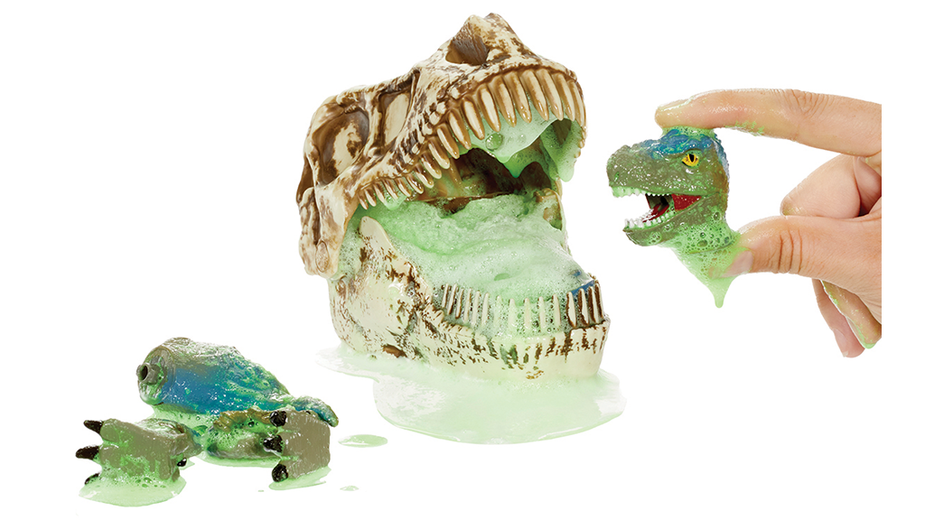 Roztiahni čeľusť dinosaura, nalej do nej vodu alebo priložený toxický sliz a sleduj, ako pena vyteká. Deti môžu zbierať kúsky, aby vytvorili druhého prekvapivého dinosaura. Táto hra nie je len zábavná, ale rozvíja aj kreativitu a zručnosť, zatiaľ čo deti objavujú svet dinosaurov.