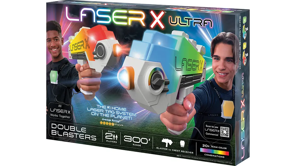 Táto sada laser tag obsahuje blaster lúče, ktoré sa od stien odrazia a môžu trafiť nepriateľa z vzdialenosti až 90 metrov. Pomocou prijímacích vest môžu deti zistiť, ktorý súper ich zasiahol.