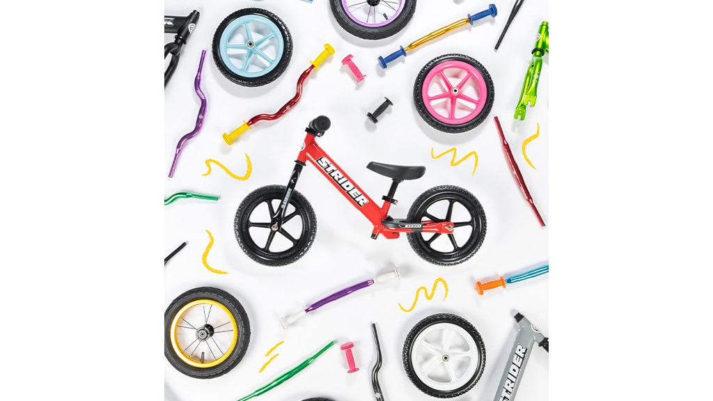 Vytvor si vlastnú verziu modelu Strider 12 Sport Bike alebo Strider 12 Pro Bike výhradne v jedinečných farbách a s veselými doplnkami, ktoré sú dostupné len na webovej stránke! Môžeš si prispôsobiť farbu rámu, štýl a farbu kolies, štýl a farbu riadidiel, a pridať rôzne doplnky, aby bol tvoj bicykel naozaj jedinečný. Objav všetky možnosti a vytvor dokonalé odrážadlo pre svoje dieťa!