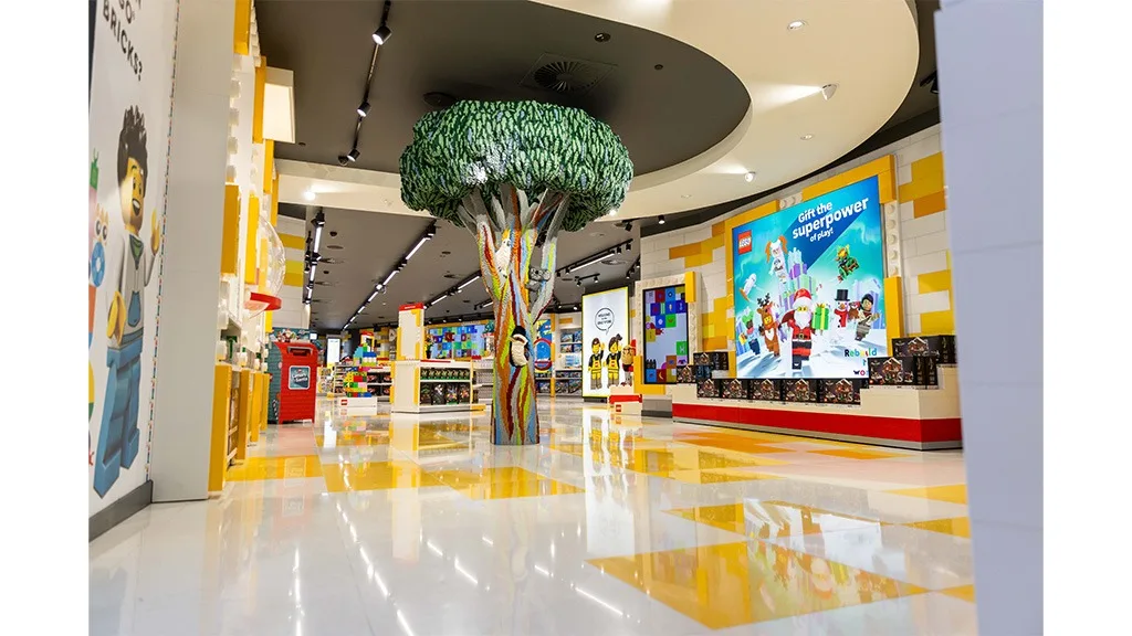 Model Rainbow Gum Tree bol postavený s použitím 183 394 tehličiek a trvalo to 1 271 hodín. Tento model sa tiahne od spodného poschodia budovy až po druhé poschodie a predstavuje všetky pôvodné austrálske zvieratá.V novom obchode sa nachádza množstvo interaktívnych funkcií. Rozprávkový stôl umožňuje fanúšikom nahliadnuť do zákulisia návrhového procesu LEGO prostredníctvom rozhovorov a videí na obrazovkách. Stena na výber a stavanie povzbudzuje návštevníkov, aby si vybrali presné LEGO dieliky potrebné pre ich vlastné stavby. Každý mesiac budú zadarmo LEGO stavebné výzvy a obchodné udalosti. Navyše, Odborníci na tehličky môžu pomôcť návštevníkom nájsť ideálnu LEGO súpravu.