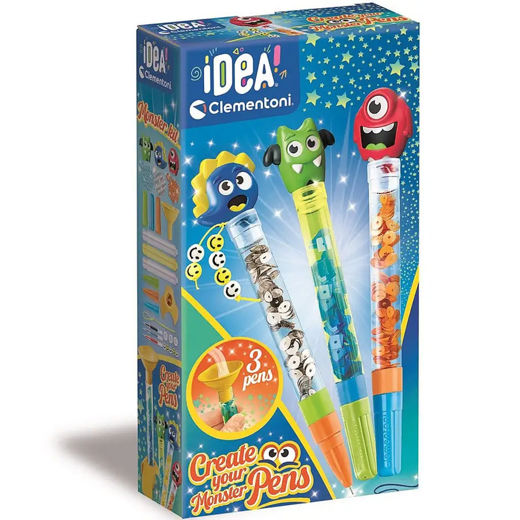 Súprava obsahuje všetky potrebné prvky: rôznofarebné telá pier, farebné korálky, flitre, malé ozdoby a, samozrejme, tú najveselšiu časť – príšerkové hlavičky! Deti si môžu samy naplniť perá vybranou dekoráciou a na záver nasadiť vtipné, figúrkové vrchnáky, vďaka čomu získajú úplne originálnu, vlastnoručne zhotovenú písaciu potrebu.
