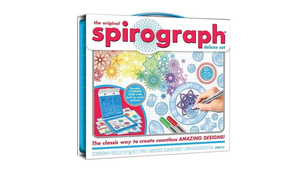 Klasická metóda na vytvorenie nespočetných dizajnov! Táto sada je verná originálu, ale aktualizovaná pre dnešnú dobu. Obsahuje prenosný kufor so zabudovaným úložným priestorom, Spirograph ozubené kolesá, dizajnérske perá, návodnú knihu, papier a oveľa viac.