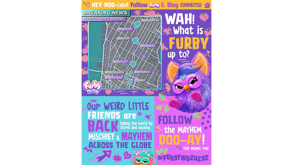 Kampaň sleduje Furbyho, ako "furbizuje" veci, ktoré sa mu dostanú do cesty! Zdroj: HasbroMôžeš sledovať túto mapu, alebo hľadať predmety pokryté srsťou a veľké stopy Furbyho. Zdroj: HasbroTo zahŕňa obrovské Furbyho stopy, farbu a trblietky na chodníkoch, ako aj predmety pokryté srsťou. Deti môžu sledovať Furbyho stopy a nájsť chlpaté lampové stĺpy, bicykle, bóje, lavičky a novinové stánky, ktoré sú výsledkom Furbyho transformačných schopností. Tieto predmety a fotografické príležitosti sa nachádzajú na Herald Square Plaza, Astor Place Plaza, Elizabeth Street Garden a na iných miestach v meste. Návštevníci sú povzbudzovaní, aby pri zverejňovaní fotografií a videí online používali hashtag #FurbyWuzHere.