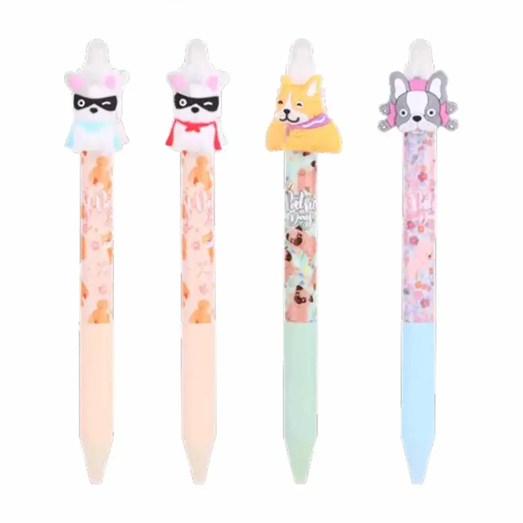 Písacie pero „Točiaci sa psíkovia“ s vymazateľným gélovým atramentom a stláčacím mechanizmom nie je len užitočná písacia pomôcka, ale aj skutočne veselý doplnok na školské či domáce tvorenie! Tieto roztomilé perá sú ozdobené figúrkami psíkov, ktoré sa dajú točiť na vrchu pera, takže sú zábavnými spoločníkmi pri písaní aj kreslení. Otočné psie hlavičky určite oživia náladu aj počas nudnejšej hodiny.