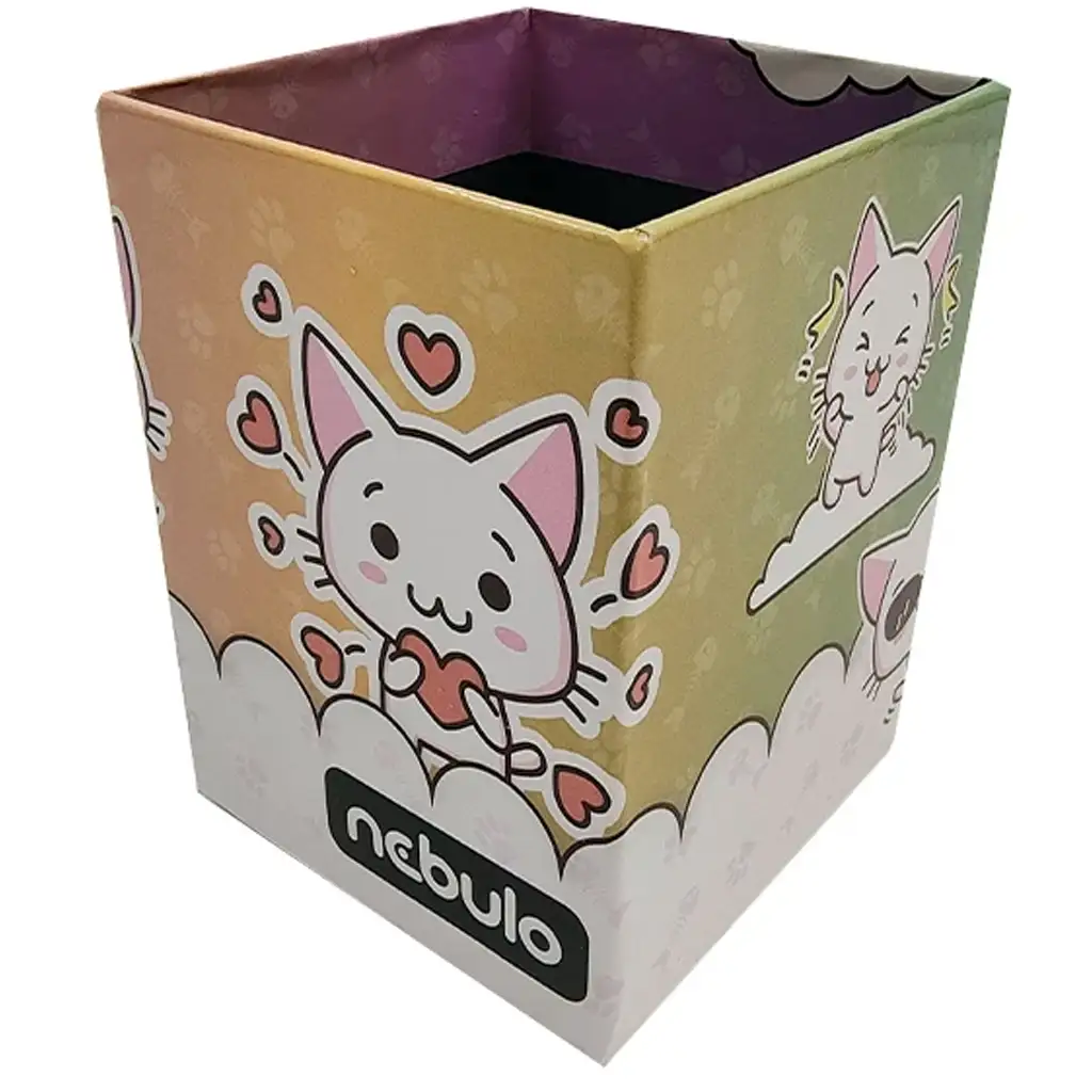 Nebulo stolový stojan na písacie potreby – Mačička môže byť veselým a roztomilým doplnkom každého písacieho stola, či už ide o detskú izbu, školský študijný kútik alebo domácu kreatívnu dielničku. Na všetkých stranách krabičky sú roztomilé, usmievavé mačičky, ktoré rozsýpajú srdiečka do vzduchu – určite ti zlepšia deň a na tvár tvojho dieťaťa vyčaria úsmev vždy, keď ich použije.