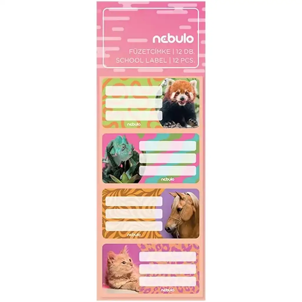 Nebulo: Sada etikiet na zošity s roztomilými zvieratkami, 12 ks