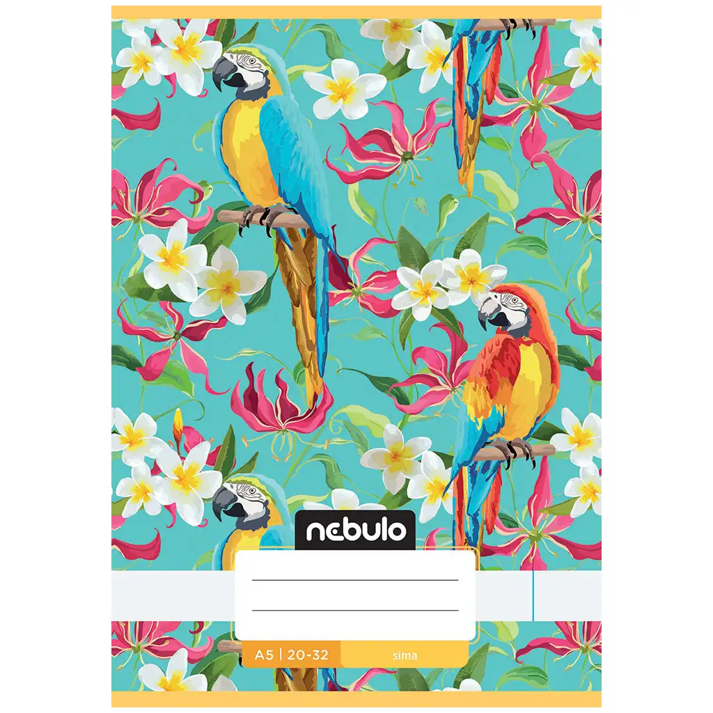 Nebulo zošit s papagájím vzorom a šitým hladkým listom prináša na školské alebo domáce tvorenie skutočne žiarivú, tropickú atmosféru. Na obálke sa na tyrkysovom pozadí vynímajú jasnofarebné ary a husté, exotické kvety – tento dynamický dizajn upúta pozornosť každého žiaka a inšpiruje počas kreatívnych aktivít. Je to dokonalá voľba pre tých, ktorí radi nielen píšu, ale aj kreslia alebo si robia ručne poznámky.