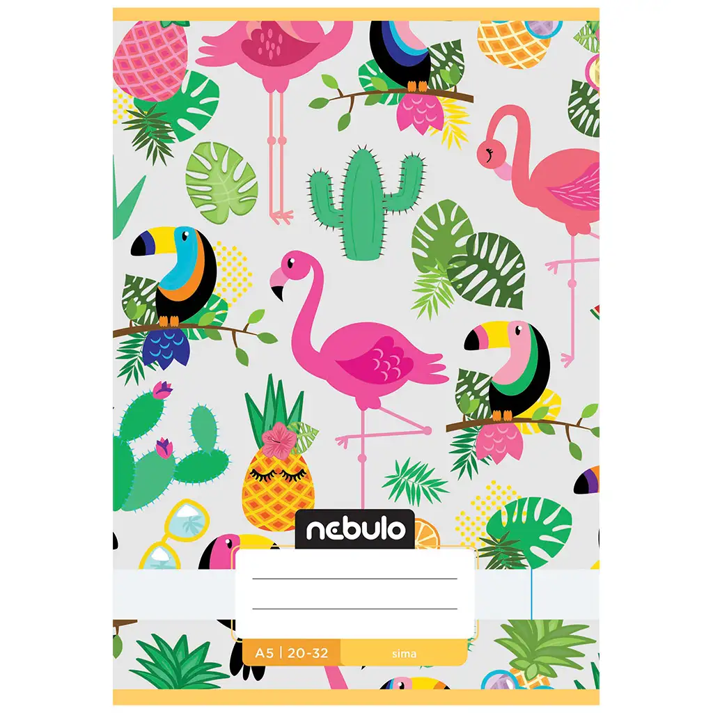 Nebulo zošit s motívom tukanov so šitou väzbou je skutočnou farebnou explóziou, ktorá zaručene rozveselí deti už na prvý pohľad. Na veselom, tropickú náladu vyžarujúcom obale sa objavujú farebné tukany, plameniaky, kaktusy a ovocie (ananás, citrón, pomaranč) v hravom, kreslenom štýle. Tento dizajn je nielen pútavý, ale aj inšpirujúci, takže deti s radosťou siahnu po zošite či už v škole, alebo počas domáceho kreatívneho trávenia času.