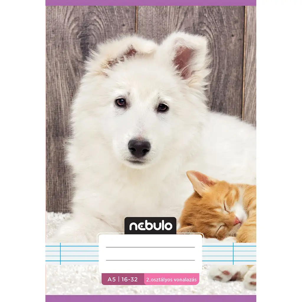 Nebulo: Zošívaný linajkový zošit pre 2. ročník A5, 16-32 strán, roztomilý motív – Priateľské domáce zvieratá