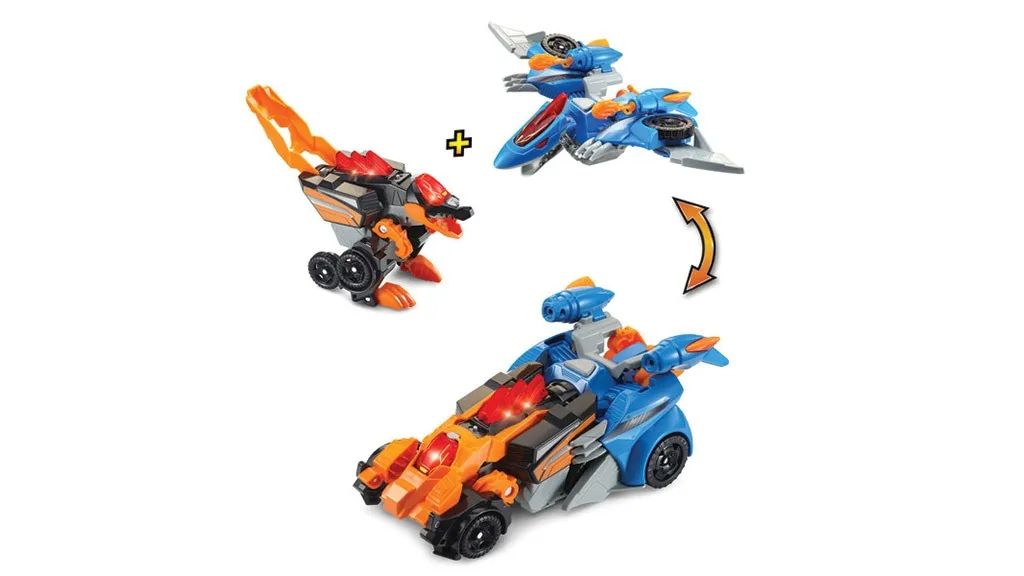 Táto hračka od spoločnosti VTech ponúka deťom možnosť hrať sa s dvoma robotickými dinosaury alebo s veľkým vozidlom, keď spoja dinosaury. Dva dinosaury sú pterodaktyl (lietajúci dinosaurus) a Spinosaurus (ten, ktorý má, ako by ste si mysleli, veľký vystupujúci chrbát). S niekoľkými jednoduchými kliknutiami sa z dinosaurov stane vozidlo, ktoré dokáže rozbehnúť Spinosaurusa do valiacej akcie.