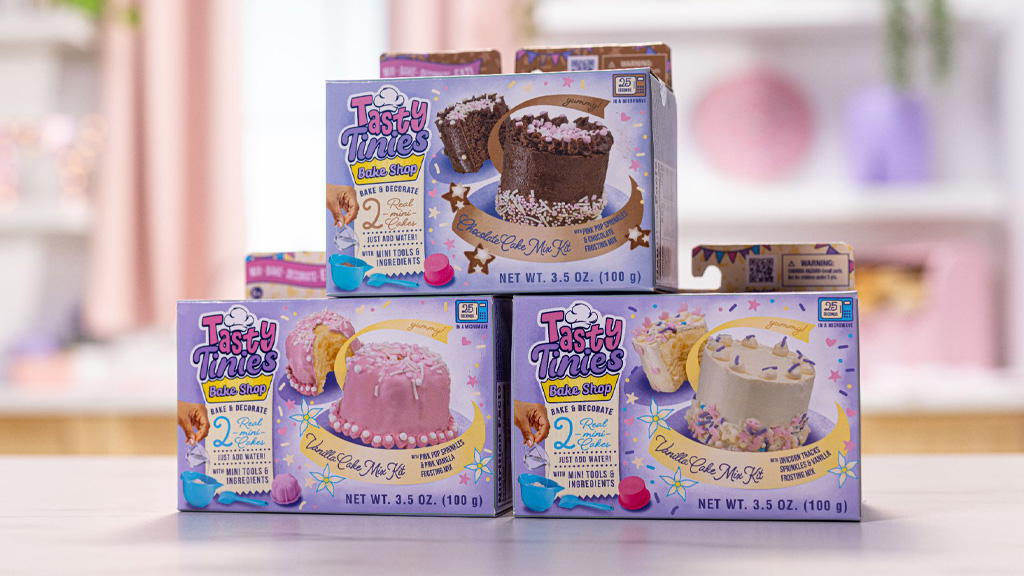 Malé koláčiky, veľký svet chutí!Goliath prichádza s novou kolekciou pre malých pekárov. Séria Tasty Tinies Bake Shop obsahuje miniatúrne torty, ktoré si deti môžu upiecť samy. Stačí len päť jednoduchých krokov a 25 sekúnd v mikrovlnke a deti si môžu pripraviť DIY sladkú pochúťku za okamih!