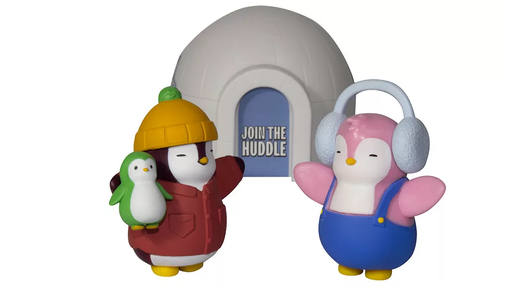 Deti môžu navždy adoptovať svojho tajomného priateľa Igloo Pudgy Penguins, figúrku, ktorá obsahuje jedinečný NFT digitálny zážitok. Celkovo môžu zbierať 12 rôznych postáv.