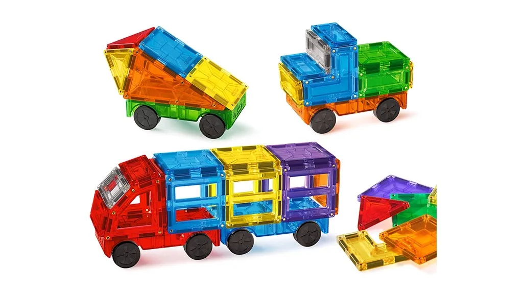 Táto sada obsahuje magnetické dlaždice, ktoré môžu deti používať na stavbu rôznych vozidiel. Obsahuje 50 kusov a 4 podvozky, všetko v 7 priehľadných farbách.Pre deti, ktoré sú nadšené silou magnetov, sada Magnetic Wonder Tiles – Vehicle Builder obsahuje plastové dlaždice, ktoré sú na každej strane vybavené magnetmi. Deti môžu vytvárať nákladné autá, vysokozdvižné vozíky a mnoho ďalších vozidiel, ktoré sa všetky hladko pohybujú vďaka magnetickému podvozku.