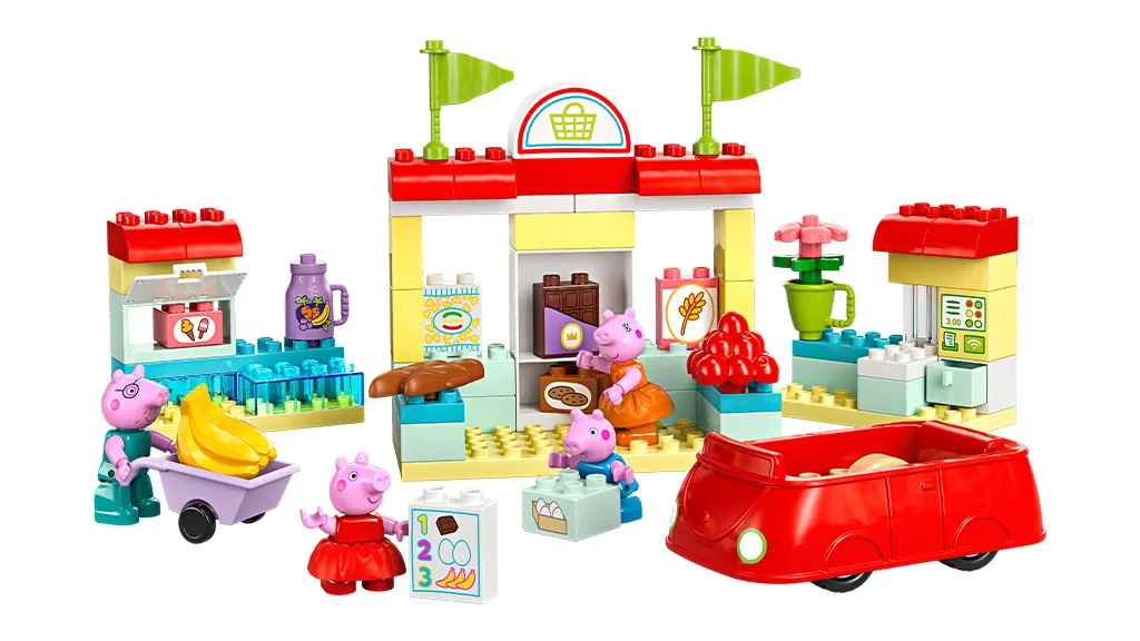 Ešte väčšiu sadu LEGO ponúka Peppa Pig Narodeninový dom s 59 kusmi, ktorá ponúka narodeninovú zábavu. Sada obsahuje Peppu a jej priateľov, Suzy a Pedra, pripravených na rozbaľovanie darčekov a sfúknutie narodeninových sviečok. Peppa Pig Supermarket sada má najviac kusov zo všetkých balíčkov, celkom 63 kusov. Sada obsahuje auto, nákupný vozík, nákupný zoznam, rôzne potraviny a oveľa viac.