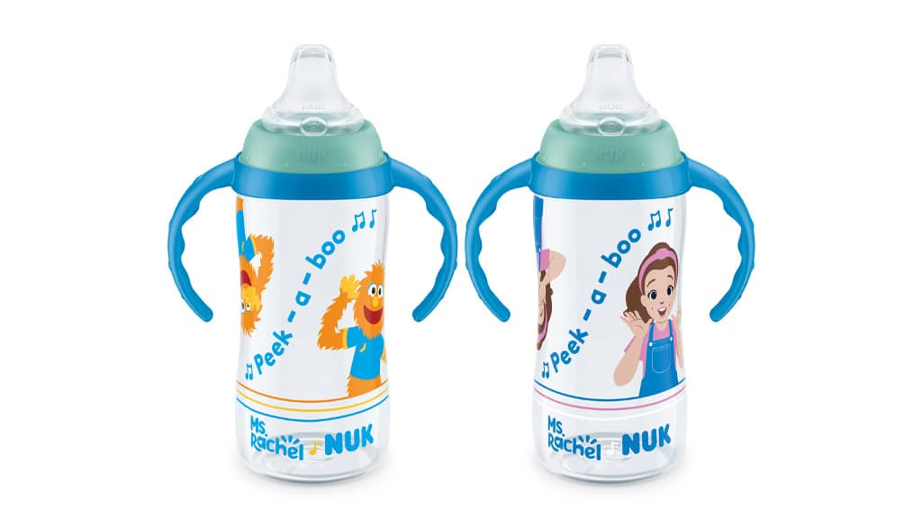 Deti sa môžu rozvíjať s pomocou Learner Cups. Tieto poháre podporujú proces učenia a pomáhajú deťom piť samostatne. Vďaka špeciálnemu dizajnu ich deti môžu používať bezpečne a pohodlne, pričom rozvíjajú svoje jemné motorické zručnosti a samostatnosť. Zdroj: NUKKolekcia momentálne obsahuje NUK 5-uncový pohárik Ms. Rachel Learner (pre deti od 6 mesiacov) a NUK 10-uncový pohárik Ms. Rachel Learner (pre deti od 8 mesiacov). Na 5-uncovom poháriku je zobrazená Ms. Rachel ako kreslená postavička, ktorú obklopujú hudobné noty, zatiaľ čo na 10-uncovom poháriku je animovaná Ms. Rachel a nasledujúci citát: „Peek-A-Boo.“ Tieto poháriky nie sú len praktické, ale svojimi veselými, farebnými vzormi motivujú deti k samostatnému pitiu a prispievajú k ich rozvoju. Výrobky sú vyrobené z vysoko kvalitných materiálov, takže sú bezpečné aj pre najmenších a ľahko sa čistia, aby uľahčili každodenný život rodičov.