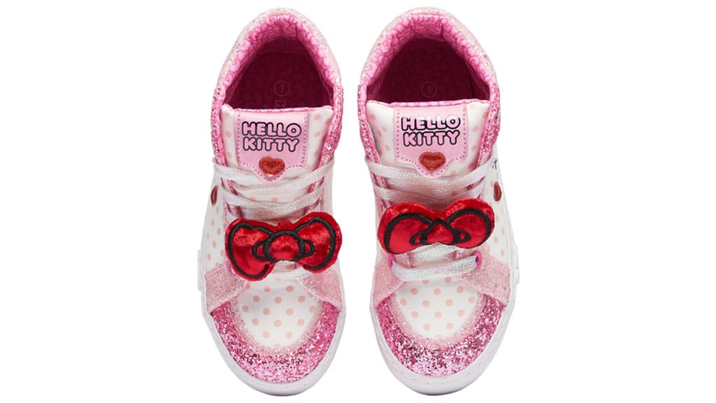 Tieto vysoké topánky Hello Kitty sú navrhnuté špeciálne pre malé deti a mladých. Topánky sú v ružovej farbe, s ružovou irizujúcou ozdobou, množstvom trblietok, bodiek a ďalšími prvkami. Samozrejme, topánky by neboli kompletné bez 3D saténovej mašle na vrchu. Detské veľkosti majú aj elastické šnúrky, čo uľahčuje obúvanie pre všetkých zúčastnených.