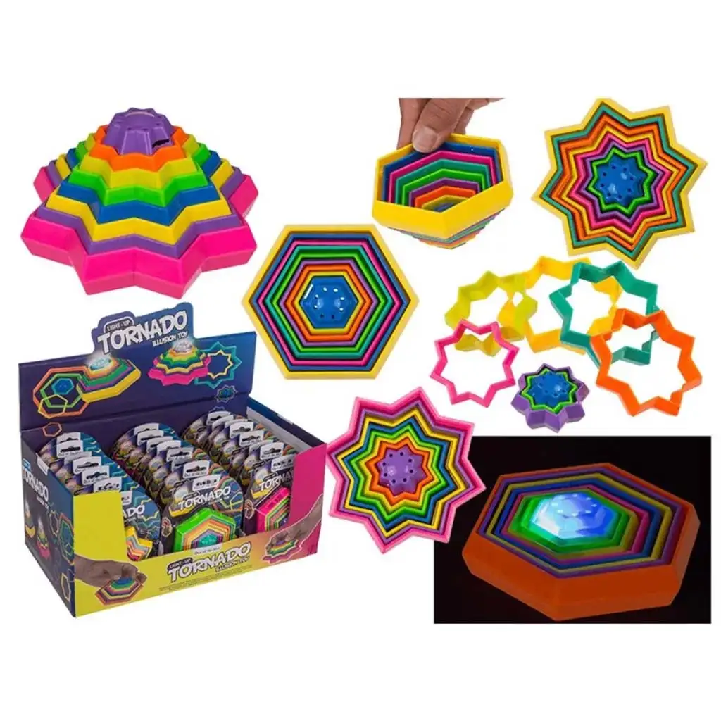 Tornádó iluzórna zručnostná hra je úžasná, farebná a interaktívna hra, ktorá zaručene zaujme deti a rozvíja ich kreativitu. Táto hra nie je len zábavná, ale pomáha rozvíjať jemnú motoriku, priestorové videnie a koncentráciu. Zvláštnosťou hry Tornádó je, že vytvára optickú ilúziu, keď otáčame alebo skladáme rôzne farebné prvky.