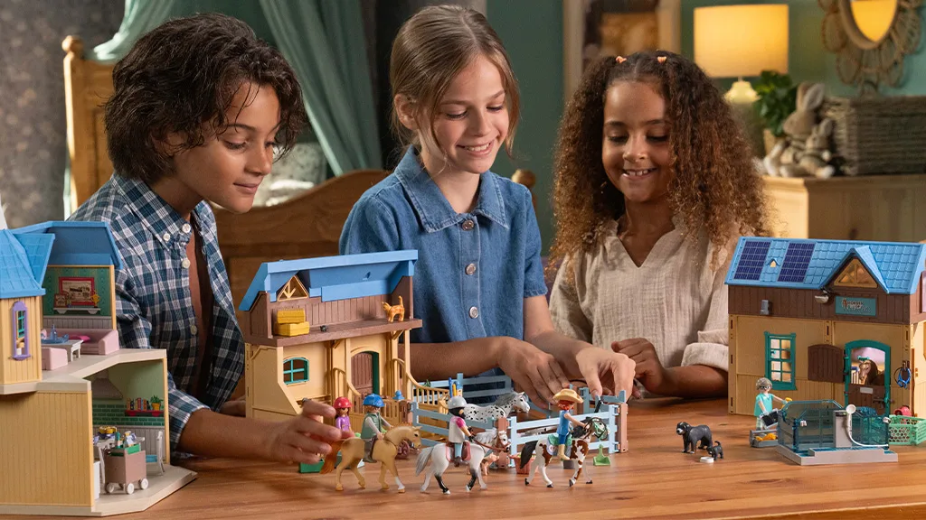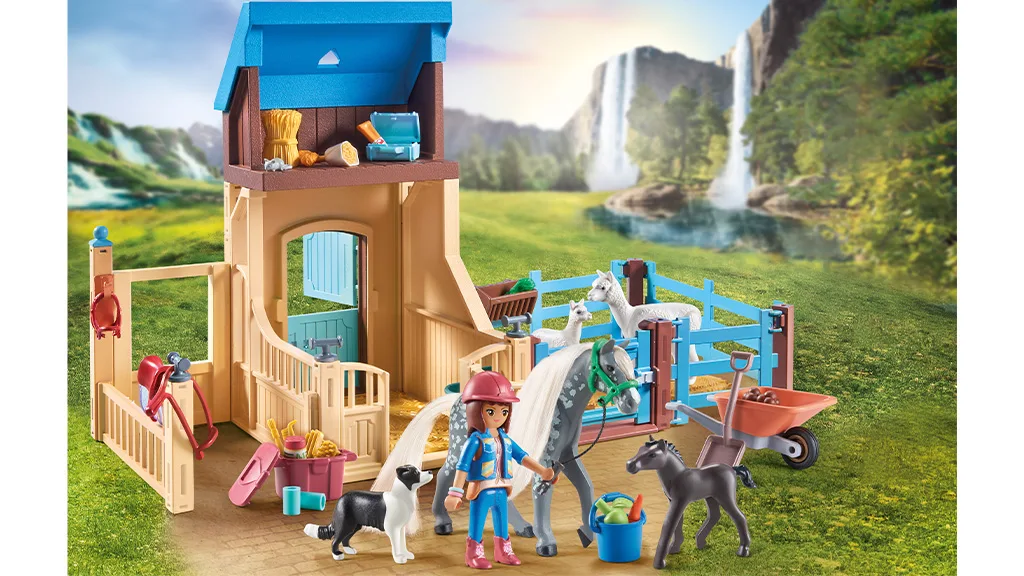 Nasedni do sedla a pripraviť sa na imaginárnu cestu do čarovného sveta Playmobil Vodopádového Jazdeckého Statku. Deti sa môžu pripojiť k Isabelle, Zoé, Benovi, Amélii, Ellie a ich žriebätám a hrebečkom v nekonečných dobrodružstvách rolí. Od obrovského, 264-dielneho Vodopádového Jazdeckého Statku až po súpravy Jazdeckej Terapie a Veterinárnej Praxe, deti môžu objavovať všetky vzrušenia života na farme.