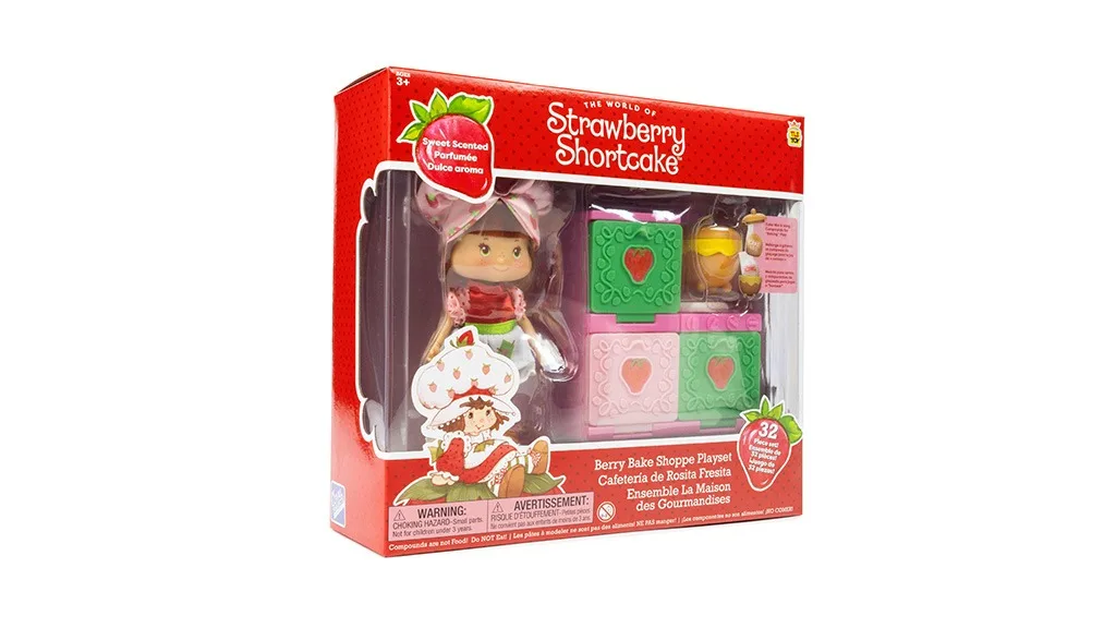 Súprava hračiek Berry Bake Shoppe obsahuje formu na koláč, prenosný kontajner na uskladnenie surovín, tvarovateľné materiály na prípravu chutných jedál, receptovú kartu, 5,5-palcovú bábiku Strawberry s voňavými zapletenými vlasmi a exkluzívne oblečenie Berry Bake shoppe!