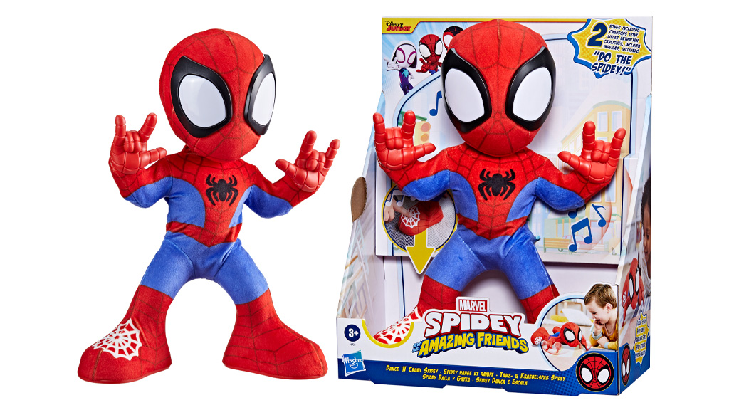 Tento rok v lete môžu rodičia pridať Tancujúceho a lezúceho Spideyho do zbierky hračiek. Deti môžu tancovať s 25 cm interaktívnym plyšákom a počuť zábavné frázy ako „Poďme tancovať Spidey tanec!“ a „Choď, siete, choď!“, ako aj skvelé piesne. Celkovo obsahuje 20 fráz a zvukov, plus dve piesne, ktoré deti spoznajú zo šou! Ak deti potrebujú trochu povzbudenia, môžu tancovať s hudobným videom „Poďme tancovať Spidey tanec!“, ktoré debutuje toto leto.