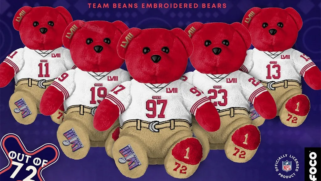 FOCO pripravuje na deň hry oficiálne licencovanú Super Bowl 58 Team Beans Bears kolekciu.