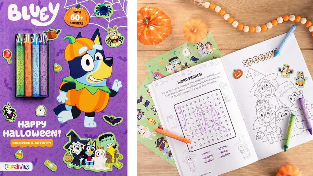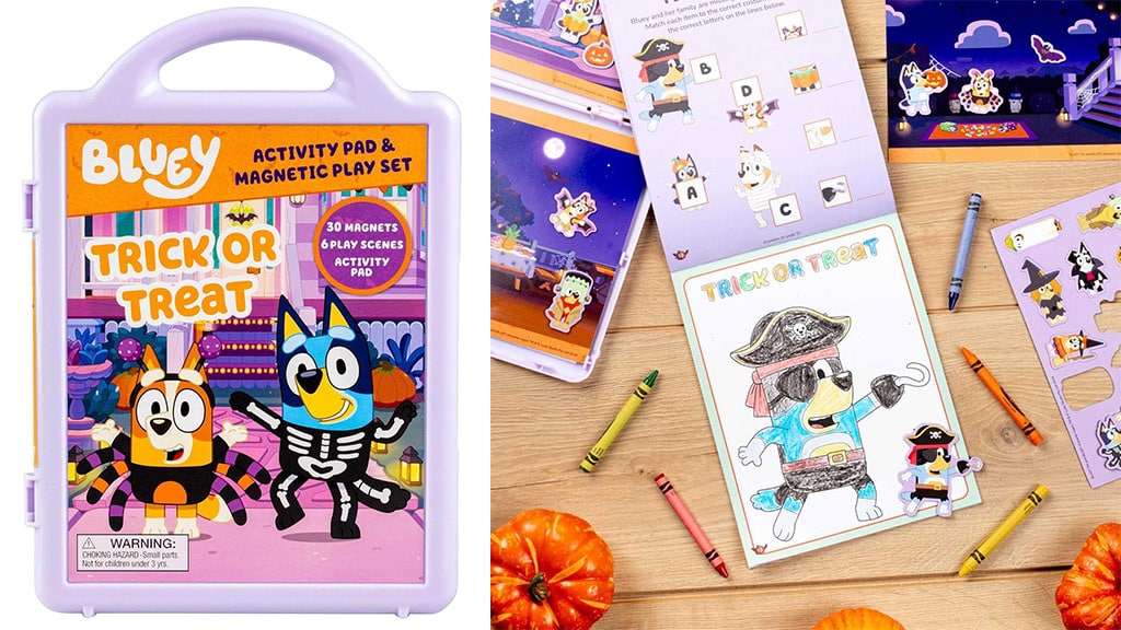 Táto súprava obsahuje 30 magnetických prvkov, s ktorými sa dá hrať. Tieto dieliky predstavujú rôzne tvary a farby, takže rozvíjajú kreativitu a jemnú motoriku detí. Magnetické prvky sa dajú ľahko pripevniť a odobrať, takže hra je zábavná aj poučná zároveň. Je to ideálna voľba na zábavu doma alebo aj počas cestovania.Aj malé deti môžu zažiť halloweensku atmosféru s otváracou knižkou „Bluey a Bingo – Kniha strašidelných vecí“, v ktorej súrodenci objavujú vzrušujúce, ale nie príliš desivé prekvapenia okolo domu – napríklad lezúci hmyz v bazéne alebo tajomné tancujúce kruhy. Táto kniha hravou formou pomáha deťom spoznať a spracovať svoje strachy, pričom sa môžu spolu smiať s rodinou. Pre väčšie deti sú k dispozícii omaľovánky a magnetická pracovná knižka, ktoré ponúkajú tucty interaktívnych hádaniek, bludísk a sviatočných hier, takže každý si nájde tú najzaujímavejšiu aktivitu počas strašidelnej sezóny.
