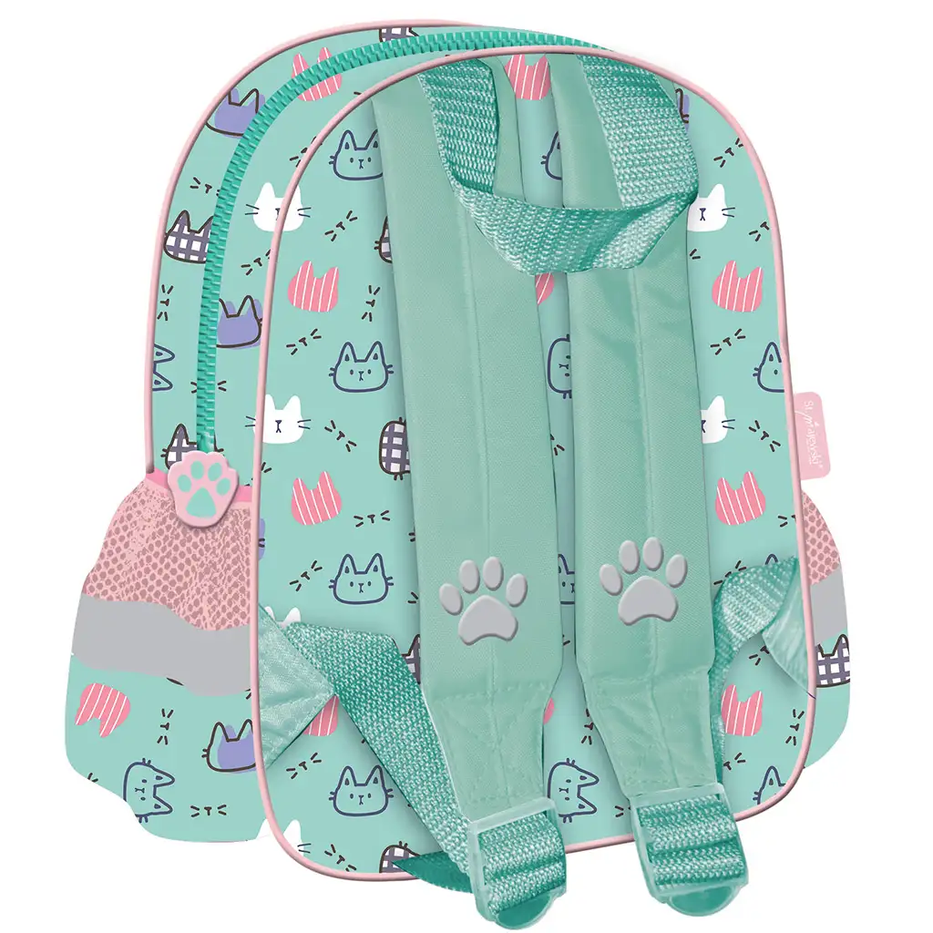 My Little Friend Fluffy Kitty mačkovský batoh pre škôlkarov s rozmermi 28x25 cm je perfektná voľba pre každého malého škôlkara, ktorý zbožňuje roztomilé mačičky a veselé farby. Očarujúci dizajn batohu zdobí veľká fotografia milého mačiatka uprostred predného vrecka, zatiaľ čo po celom batohu hrajú veselé, mačacie grafiky a srdiečka, ktoré ešte viac zvýrazňujú hravý vzhľad. Ružová a mätovozelená základná farba, ako aj zipsy v tvare labky dodávajú taške skutočne jedinečný a priateľský vzhľad, ktorý si každé dieťa rado oblečie.