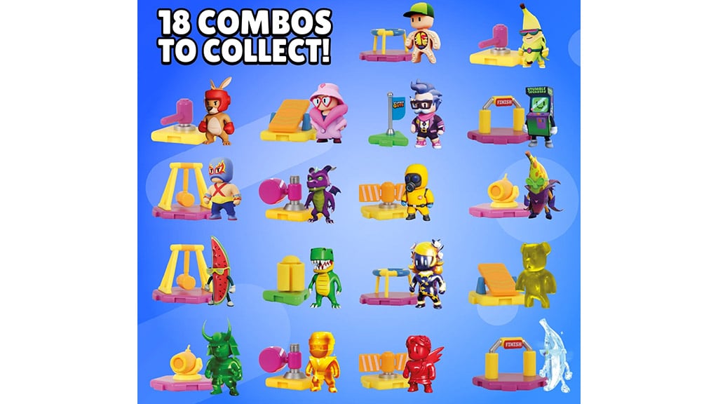 V každej kapsule sa nachádza jedna mini Stumble Guys zberateľská figúrka, jedna prekážka, jedna nálepka a DLC kód, ktorý odomyká špeciálnu, exkluzívnu odmenu v hre Stumble Guys.