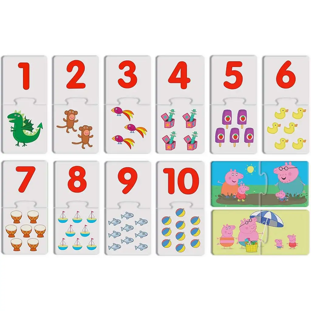 Peppa Pig párovacia hra je super veselá rozvojová hra od 2 rokov, v ktorej sa deti môžu učiť spolu so svojou obľúbenou rozprávkovou hrdinkou Peppou a jej rodinou. Táto hra pozostáva z farebných obrázkových kariet, na ktorých môžu deti spájať rôzne farby, čísla a tvary – vďaka tomu sa počas hry rozvíja ich logické myslenie, pozornosť aj pamäť. Veľké, ľahko uchopiteľné diely sú bezpečné aj pre tie najmenšie rúčky a milé ilustrácie si deti okamžite obľúbia.